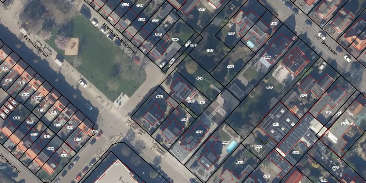 Het perceel waarop Beemsterstraat 13 staat heeft een oppervlakte van 315 m². Dit is een groot perceel. De perceeloppervlakte wordt geregistreerd door het Kadaster. Gedetailleerde informatie over de maten van dit perceel kunt u vinden in het rapport Kadastrale kaart met maatvoering van Beemsterstraat 13.