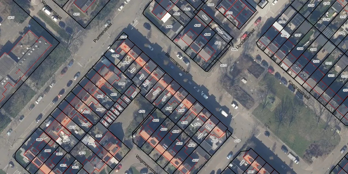 Gebruik de zoekbalk of klik op een perceel voor informatie over de adressen binnen dit perceel.