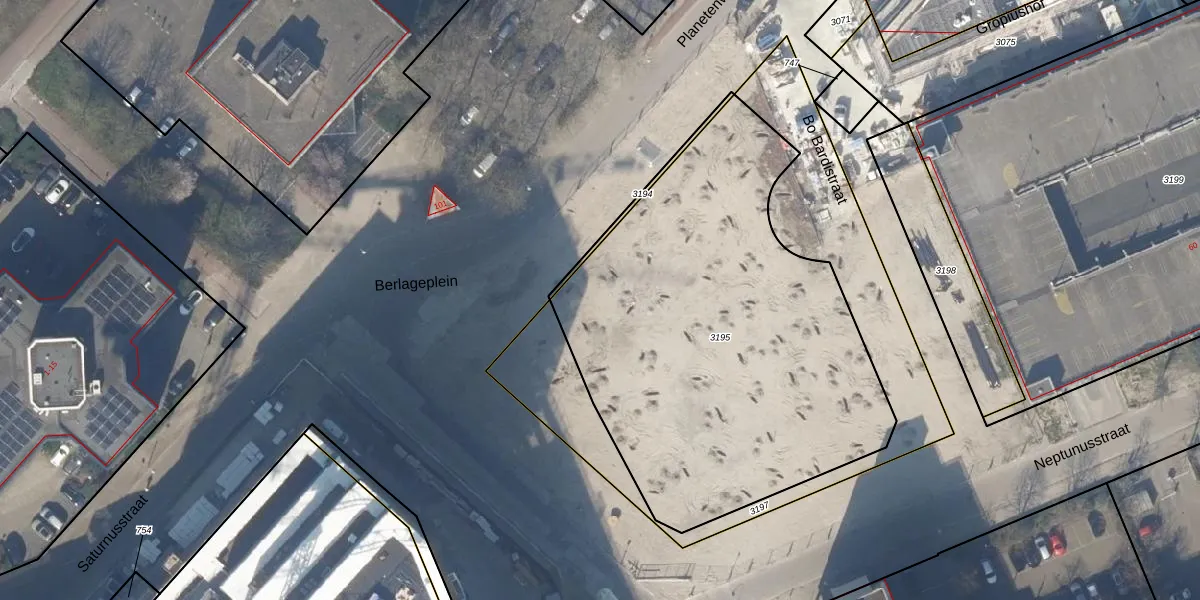 Het perceel waarop Berlageplein 11 staat heeft een oppervlakte van 2372 m². Dit is een zeer groot perceel. De perceeloppervlakte wordt geregistreerd door het Kadaster. Gedetailleerde informatie over de maten van dit perceel kunt u vinden in het rapport Kadastrale kaart met maatvoering van Berlageplein 11.
