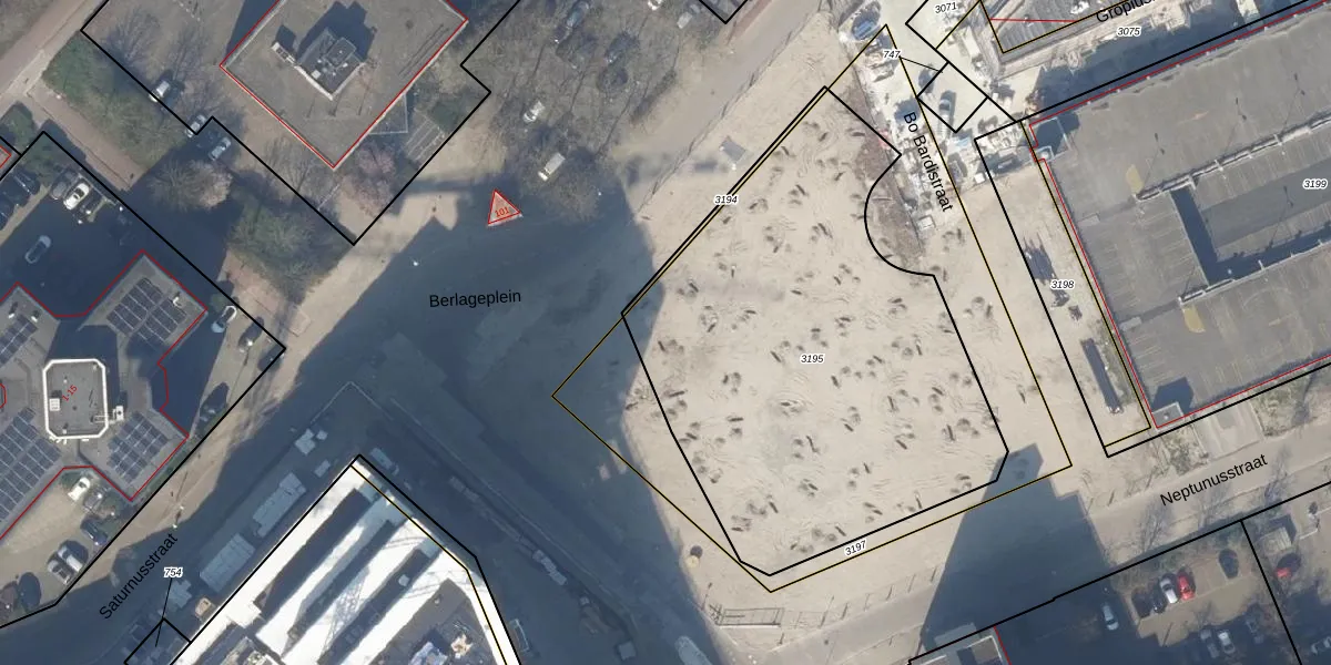 Het perceel waarop Berlageplein 17 staat heeft een oppervlakte van 2372 m². Dit is een zeer groot perceel. De perceeloppervlakte wordt geregistreerd door het Kadaster. Gedetailleerde informatie over de maten van dit perceel kunt u vinden in het rapport Kadastrale kaart met maatvoering van Berlageplein 17.