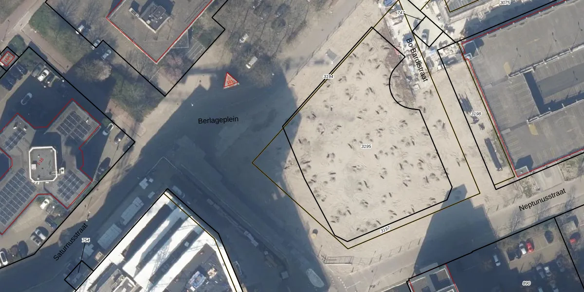 Het perceel waarop Berlageplein 27 staat heeft een oppervlakte van 2372 m². Dit is een zeer groot perceel. De perceeloppervlakte wordt geregistreerd door het Kadaster. Gedetailleerde informatie over de maten van dit perceel kunt u vinden in het rapport Kadastrale kaart met maatvoering van Berlageplein 27.