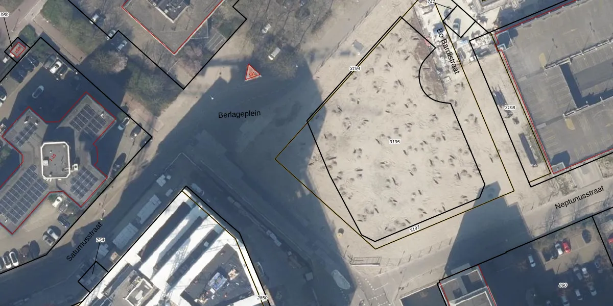 Het perceel waarop Berlageplein 37 staat heeft een oppervlakte van 1058 m². Dit is een zeer groot perceel. De perceeloppervlakte wordt geregistreerd door het Kadaster. Gedetailleerde informatie over de maten van dit perceel kunt u vinden in het rapport Kadastrale kaart met maatvoering van Berlageplein 37.