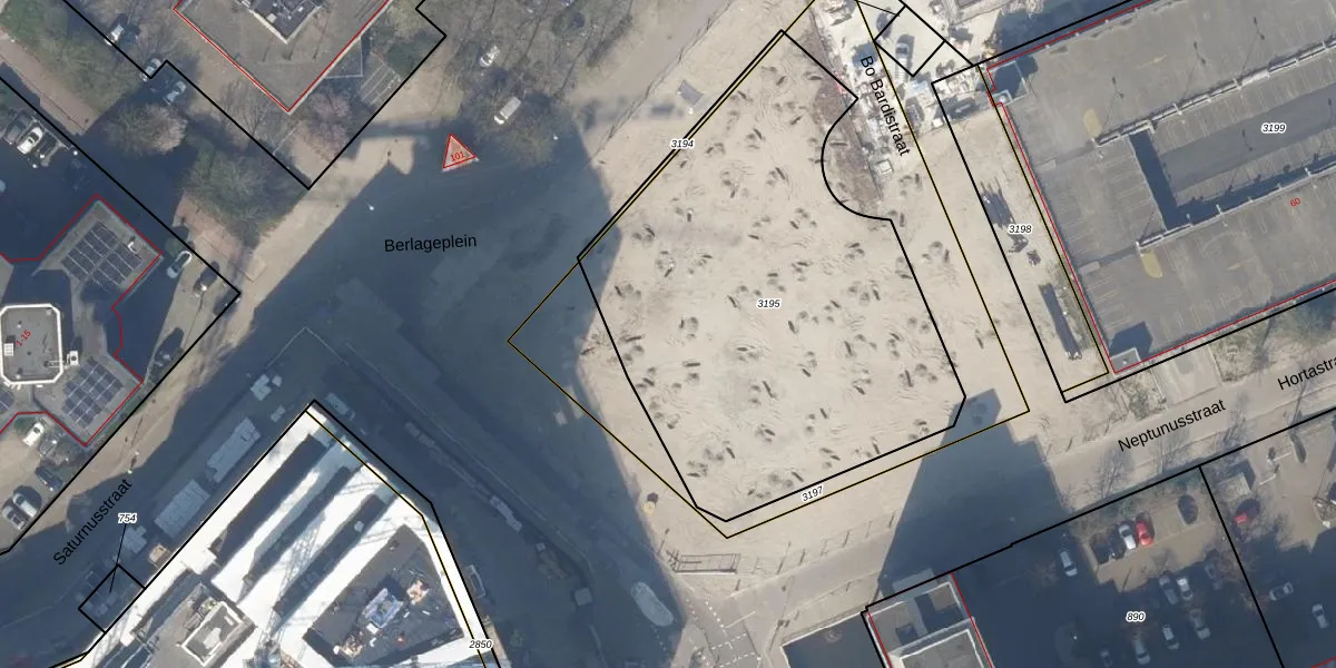 Het perceel waarop Berlageplein 75 staat heeft een oppervlakte van 2372 m². Dit is een zeer groot perceel. De perceeloppervlakte wordt geregistreerd door het Kadaster. Gedetailleerde informatie over de maten van dit perceel kunt u vinden in het rapport Kadastrale kaart met maatvoering van Berlageplein 75.