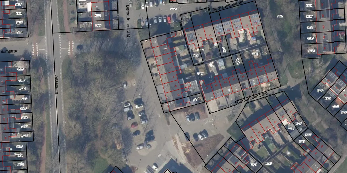 Het perceel waarop Bernadottestraat 11 staat heeft een oppervlakte van 1900 m². Dit is een zeer groot perceel. De perceeloppervlakte wordt geregistreerd door het Kadaster. Gedetailleerde informatie over de maten van dit perceel kunt u vinden in het rapport Kadastrale kaart met maatvoering van Bernadottestraat 11.