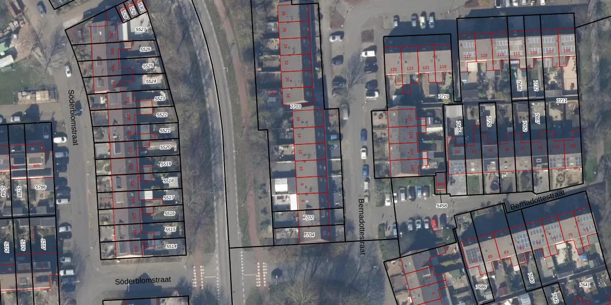 Het perceel waarop Bernadottestraat 12 staat heeft een oppervlakte van 1583 m². Dit is een zeer groot perceel. De perceeloppervlakte wordt geregistreerd door het Kadaster. Gedetailleerde informatie over de maten van dit perceel kunt u vinden in het rapport Kadastrale kaart met maatvoering van Bernadottestraat 12.