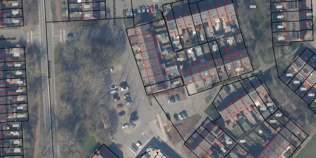 Het perceel waarop Bernadottestraat 13 staat heeft een oppervlakte van 1900 m². Dit is een zeer groot perceel. De perceeloppervlakte wordt geregistreerd door het Kadaster. Gedetailleerde informatie over de maten van dit perceel kunt u vinden in het rapport Kadastrale kaart met maatvoering van Bernadottestraat 13.