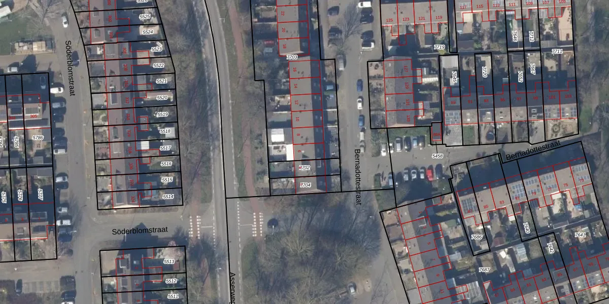 Het perceel waarop Bernadottestraat 6 staat heeft een oppervlakte van 1583 m². Dit is een zeer groot perceel. De perceeloppervlakte wordt geregistreerd door het Kadaster. Gedetailleerde informatie over de maten van dit perceel kunt u vinden in het rapport Kadastrale kaart met maatvoering van Bernadottestraat 6.