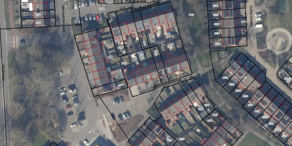 Het perceel waarop Bernadottestraat 61 staat heeft een oppervlakte van 1900 m². Dit is een zeer groot perceel. De perceeloppervlakte wordt geregistreerd door het Kadaster. Gedetailleerde informatie over de maten van dit perceel kunt u vinden in het rapport Kadastrale kaart met maatvoering van Bernadottestraat 61.