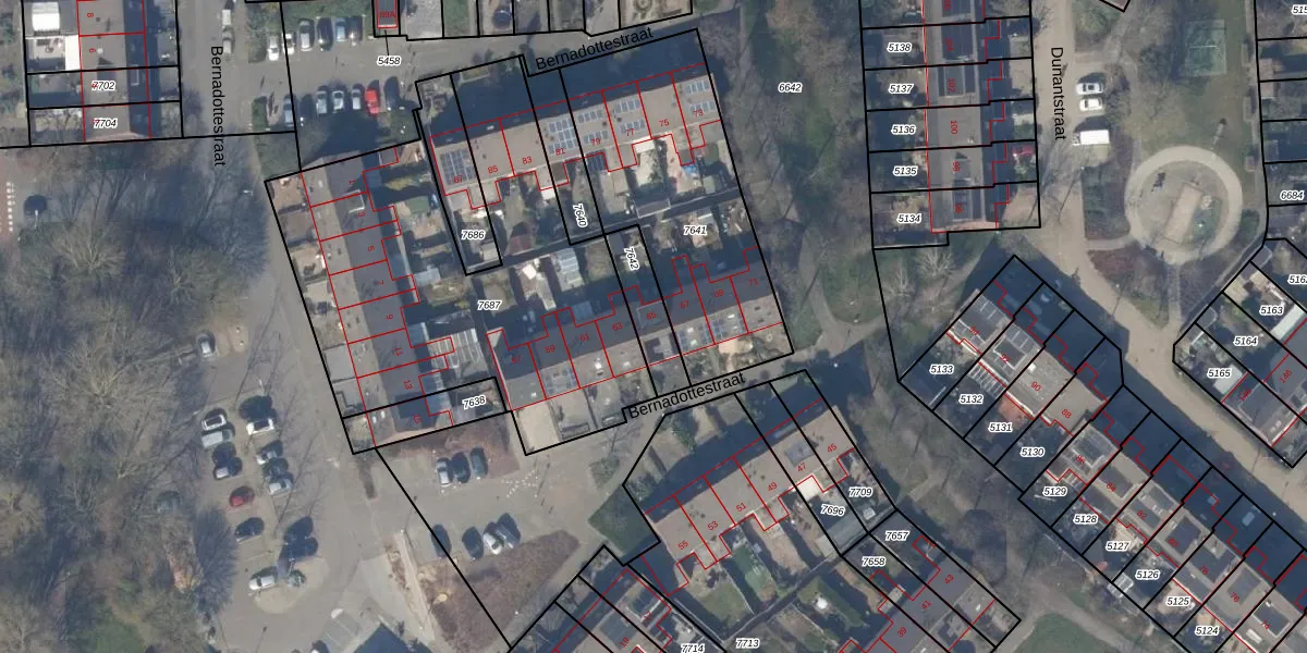 Het perceel waarop Bernadottestraat 65 staat heeft een oppervlakte van 140 m². Dit is een middelgroot perceel. De perceeloppervlakte wordt geregistreerd door het Kadaster. Gedetailleerde informatie over de maten van dit perceel kunt u vinden in het rapport Kadastrale kaart met maatvoering van Bernadottestraat 65.