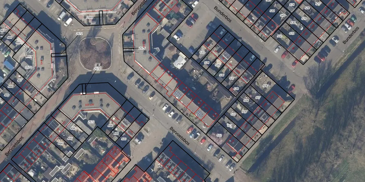 Het perceel waarop Bervoetsbos 100 staat heeft een oppervlakte van 2179 m². Dit is een zeer groot perceel. De perceeloppervlakte wordt geregistreerd door het Kadaster. Gedetailleerde informatie over de maten van dit perceel kunt u vinden in het rapport Kadastrale kaart met maatvoering van Bervoetsbos 100.