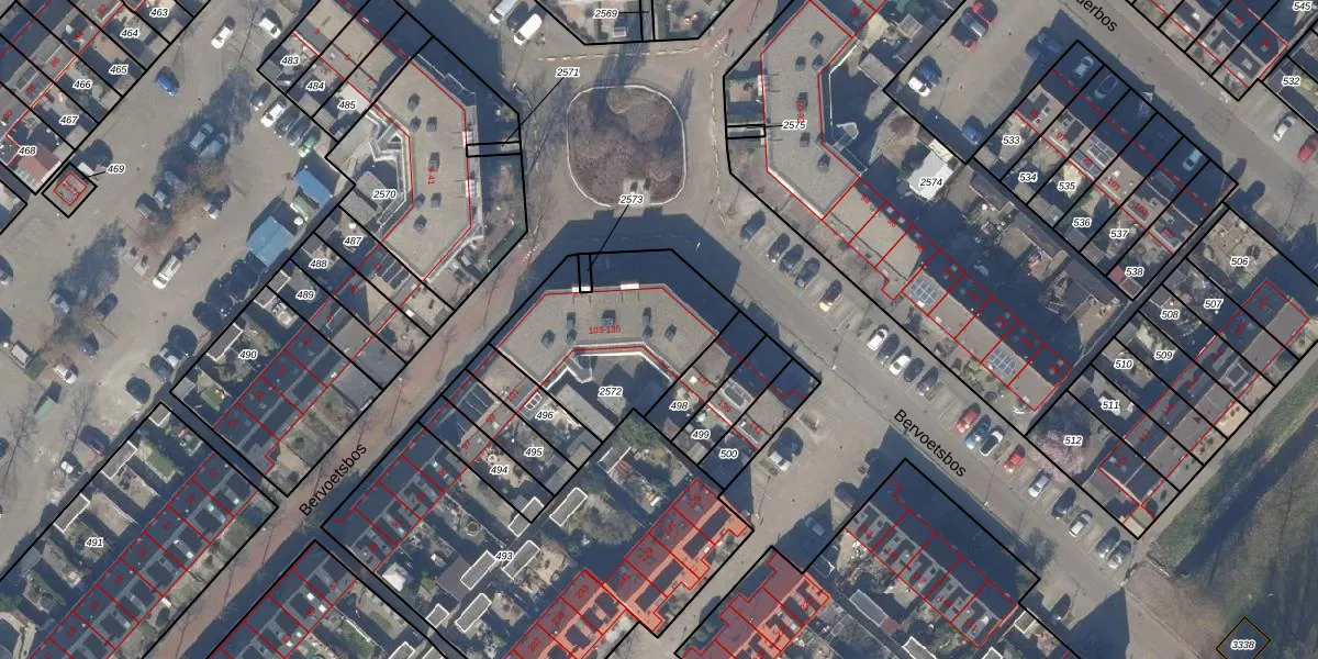 Het perceel waarop Bervoetsbos 121 staat heeft een oppervlakte van 640 m². Dit is een groot perceel. De perceeloppervlakte wordt geregistreerd door het Kadaster. Gedetailleerde informatie over de maten van dit perceel kunt u vinden in het rapport Kadastrale kaart met maatvoering van Bervoetsbos 121.