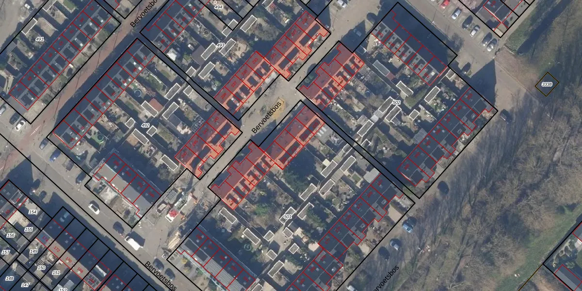 Het perceel waarop Bervoetsbos 211 staat heeft een oppervlakte van 3700 m². Dit is een zeer groot perceel. De perceeloppervlakte wordt geregistreerd door het Kadaster. Gedetailleerde informatie over de maten van dit perceel kunt u vinden in het rapport Kadastrale kaart met maatvoering van Bervoetsbos 211.