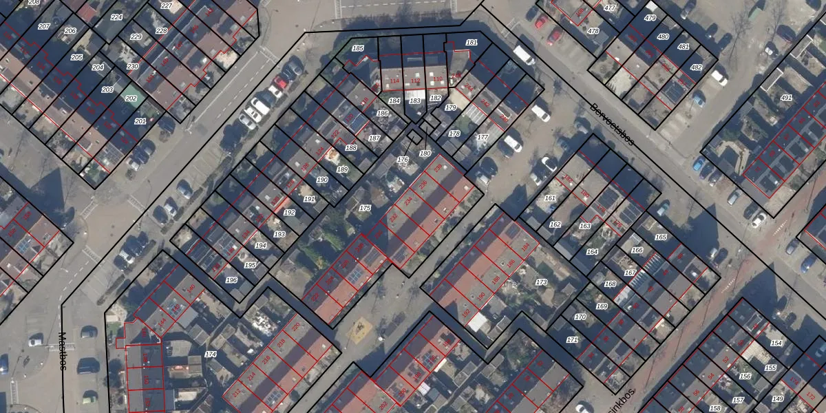 Het perceel waarop Bervoetsbos 234 staat heeft een oppervlakte van 1150 m². Dit is een zeer groot perceel. De perceeloppervlakte wordt geregistreerd door het Kadaster. Gedetailleerde informatie over de maten van dit perceel kunt u vinden in het rapport Kadastrale kaart met maatvoering van Bervoetsbos 234.