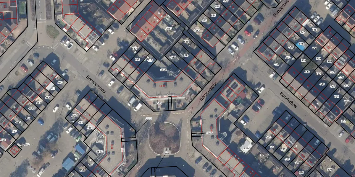 Het perceel waarop Bervoetsbos 32 staat heeft een oppervlakte van 1343 m². Dit is een zeer groot perceel. De perceeloppervlakte wordt geregistreerd door het Kadaster. Gedetailleerde informatie over de maten van dit perceel kunt u vinden in het rapport Kadastrale kaart met maatvoering van Bervoetsbos 32.