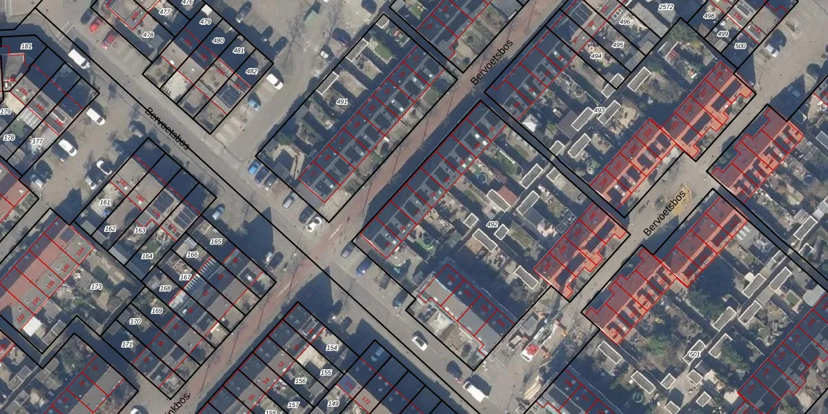 Bervoetsbos 77 is gelegen op kadastraal perceel HLM03P492. Deze kadastrale aanduiding is uniek en wordt gebruikt door het Kadaster om eigendomsrechten en andere zakelijke rechten vast te leggen. Het perceel maakt onderdeel uit van de kadastrale gemeente Haarlemmermeer.