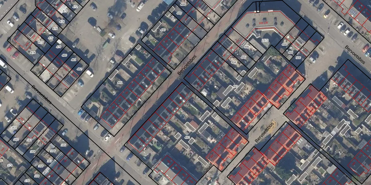 Bervoetsbos 87 is gelegen op kadastraal perceel HLM03P492. Deze kadastrale aanduiding is uniek en wordt gebruikt door het Kadaster om eigendomsrechten en andere zakelijke rechten vast te leggen. Het perceel maakt onderdeel uit van de kadastrale gemeente Haarlemmermeer.