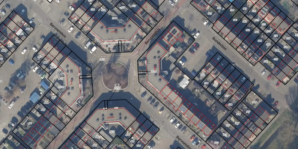 Het perceel waarop Bervoetsbos 88 staat heeft een oppervlakte van 2179 m². Dit is een zeer groot perceel. De perceeloppervlakte wordt geregistreerd door het Kadaster. Gedetailleerde informatie over de maten van dit perceel kunt u vinden in het rapport Kadastrale kaart met maatvoering van Bervoetsbos 88.
