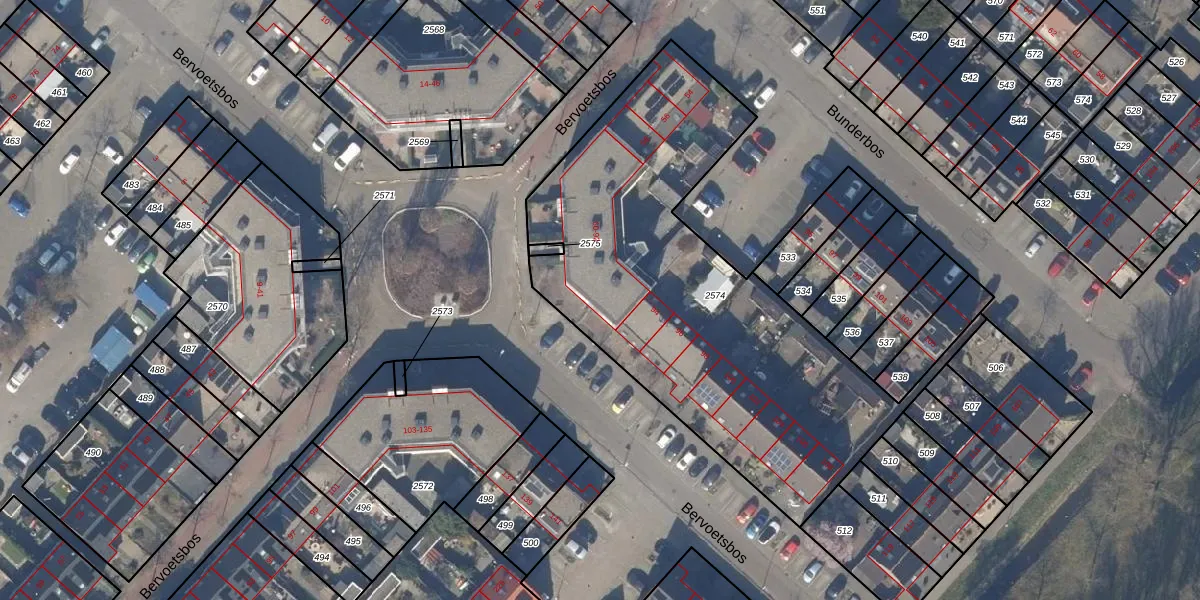 Het perceel waarop Bervoetsbos 90 staat heeft een oppervlakte van 2179 m². Dit is een zeer groot perceel. De perceeloppervlakte wordt geregistreerd door het Kadaster. Gedetailleerde informatie over de maten van dit perceel kunt u vinden in het rapport Kadastrale kaart met maatvoering van Bervoetsbos 90.