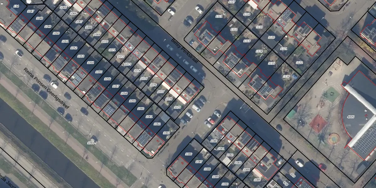 Het perceel waarop Betsy Perkstraat 42 staat heeft een oppervlakte van 166 m². Dit is een middelgroot perceel. De perceeloppervlakte wordt geregistreerd door het Kadaster. Gedetailleerde informatie over de maten van dit perceel kunt u vinden in het rapport Kadastrale kaart met maatvoering van Betsy Perkstraat 42.
