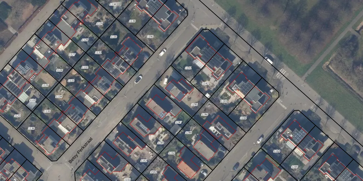 Het perceel waarop Betsy Perkstraat 53 staat heeft een oppervlakte van 389 m². Dit is een groot perceel. De perceeloppervlakte wordt geregistreerd door het Kadaster. Gedetailleerde informatie over de maten van dit perceel kunt u vinden in het rapport Kadastrale kaart met maatvoering van Betsy Perkstraat 53.