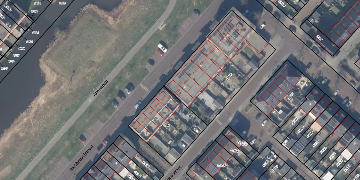 Het perceel waarop Biesheuvelstraat 125 staat heeft een oppervlakte van 1870 m². Dit is een zeer groot perceel. De perceeloppervlakte wordt geregistreerd door het Kadaster. Gedetailleerde informatie over de maten van dit perceel kunt u vinden in het rapport Kadastrale kaart met maatvoering van Biesheuvelstraat 125.