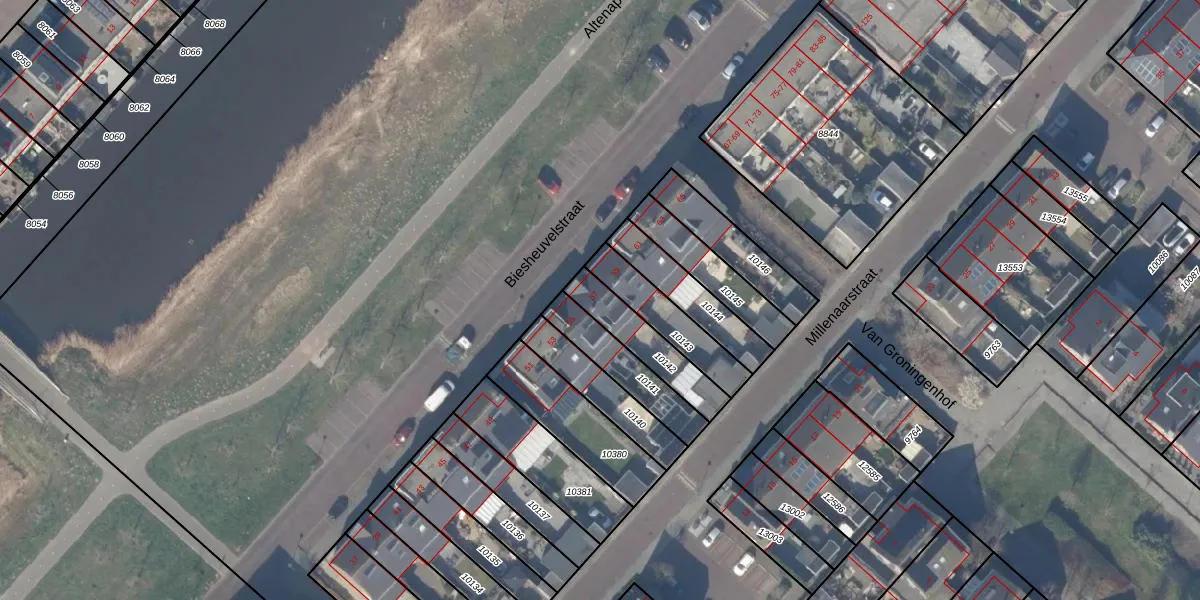 Het perceel waarop Biesheuvelstraat 57 staat heeft een oppervlakte van 178 m². Dit is een middelgroot perceel. De perceeloppervlakte wordt geregistreerd door het Kadaster. Gedetailleerde informatie over de maten van dit perceel kunt u vinden in het rapport Kadastrale kaart met maatvoering van Biesheuvelstraat 57.