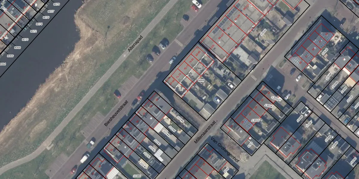 Het perceel waarop Biesheuvelstraat 69 staat heeft een oppervlakte van 983 m². Dit is een groot perceel. De perceeloppervlakte wordt geregistreerd door het Kadaster. Gedetailleerde informatie over de maten van dit perceel kunt u vinden in het rapport Kadastrale kaart met maatvoering van Biesheuvelstraat 69.