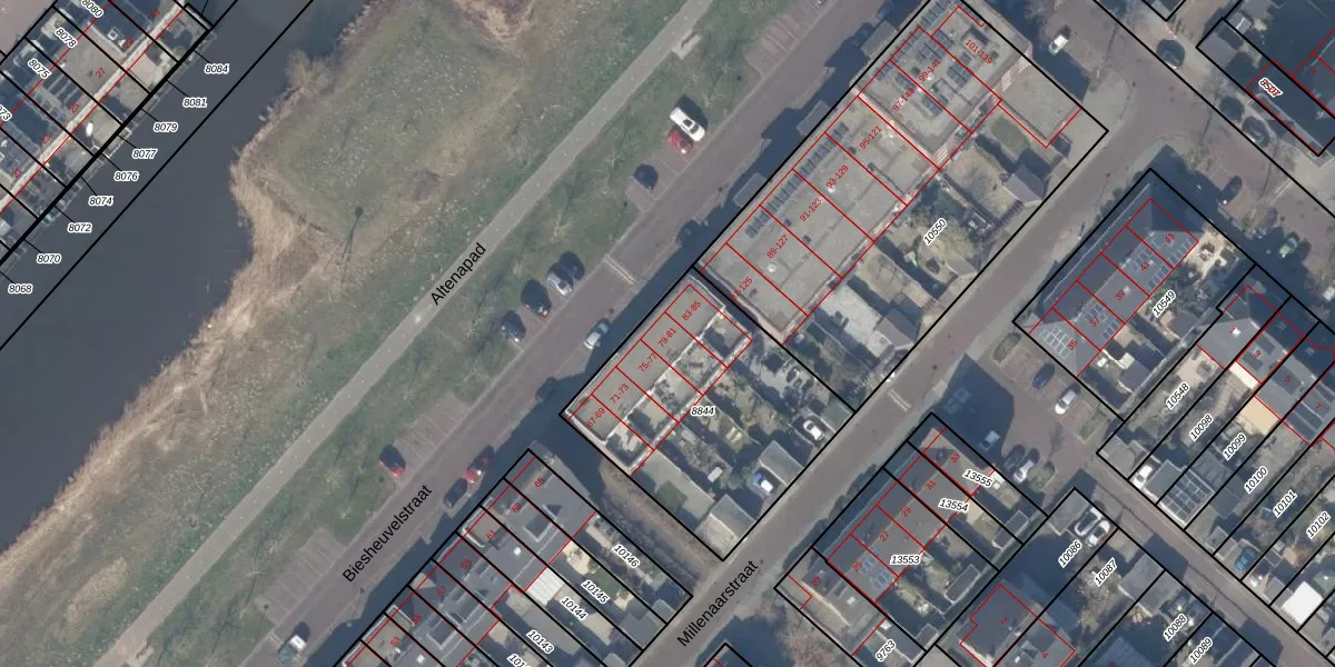 Biesheuvelstraat 79 is gelegen op kadastraal perceel HLM03AD8844. Deze kadastrale aanduiding is uniek en wordt gebruikt door het Kadaster om eigendomsrechten en andere zakelijke rechten vast te leggen. Het perceel maakt onderdeel uit van de kadastrale gemeente Haarlemmermeer.