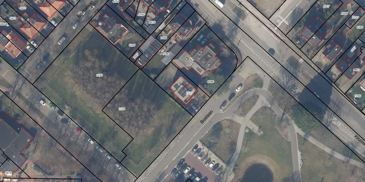 Het perceel waarop Boslaan 2-A staat heeft een oppervlakte van 410 m². Dit is een groot perceel. De perceeloppervlakte wordt geregistreerd door het Kadaster. Gedetailleerde informatie over de maten van dit perceel kunt u vinden in het rapport Kadastrale kaart met maatvoering van Boslaan 2-A.