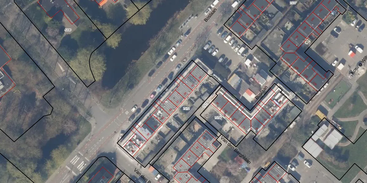 Het perceel waarop Boslaan 59 staat heeft een oppervlakte van 1244 m². Dit is een zeer groot perceel. De perceeloppervlakte wordt geregistreerd door het Kadaster. Gedetailleerde informatie over de maten van dit perceel kunt u vinden in het rapport Kadastrale kaart met maatvoering van Boslaan 59.