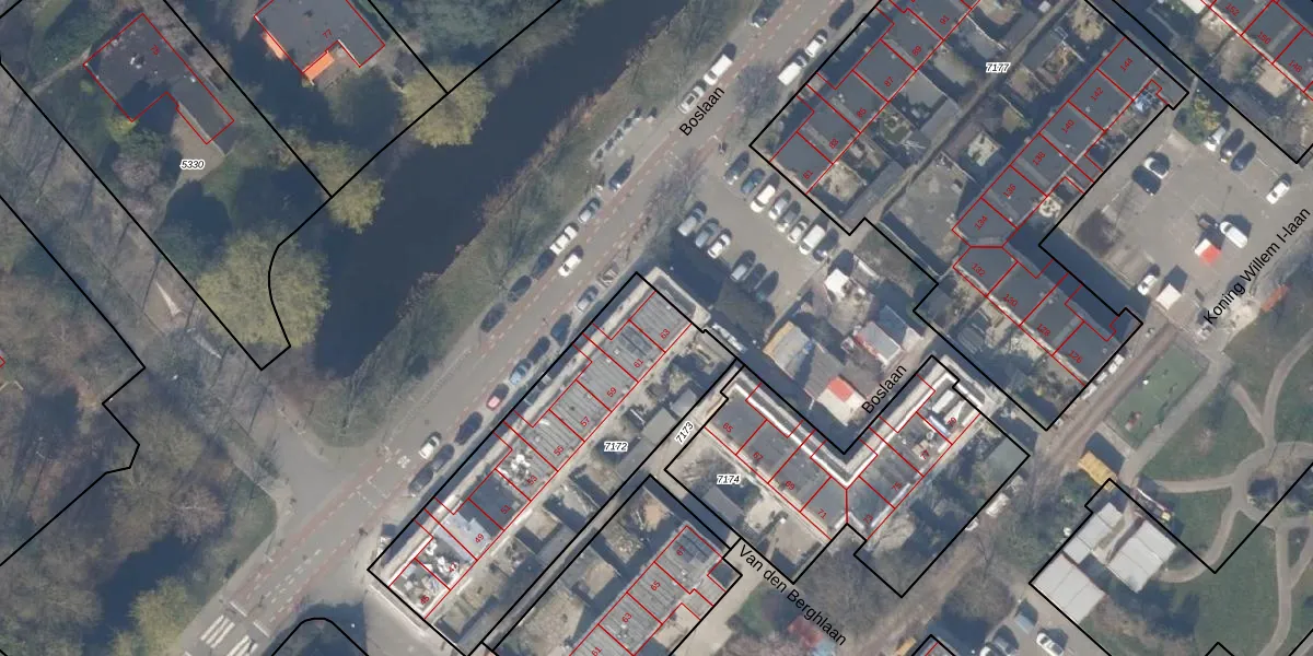 Boslaan 63 is gelegen op kadastraal perceel HLM03K7172. Deze kadastrale aanduiding is uniek en wordt gebruikt door het Kadaster om eigendomsrechten en andere zakelijke rechten vast te leggen. Het perceel maakt onderdeel uit van de kadastrale gemeente Haarlemmermeer.