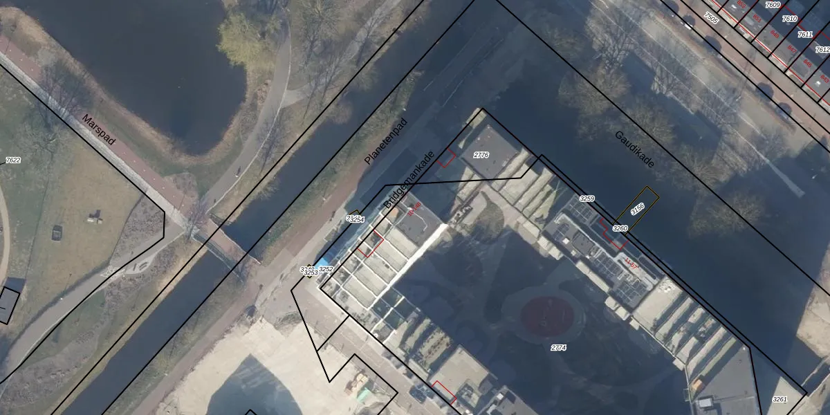 Het perceel waarop Bridgemankade 12 staat heeft een oppervlakte van 5566 m². Dit is een zeer groot perceel. De perceeloppervlakte wordt geregistreerd door het Kadaster. Gedetailleerde informatie over de maten van dit perceel kunt u vinden in het rapport Kadastrale kaart met maatvoering van Bridgemankade 12.