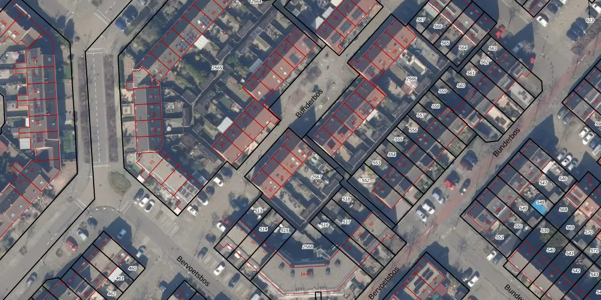 Het perceel waarop Bunderbos 43 staat heeft een oppervlakte van 1343 m². Dit is een zeer groot perceel. De perceeloppervlakte wordt geregistreerd door het Kadaster. Gedetailleerde informatie over de maten van dit perceel kunt u vinden in het rapport Kadastrale kaart met maatvoering van Bunderbos 43.