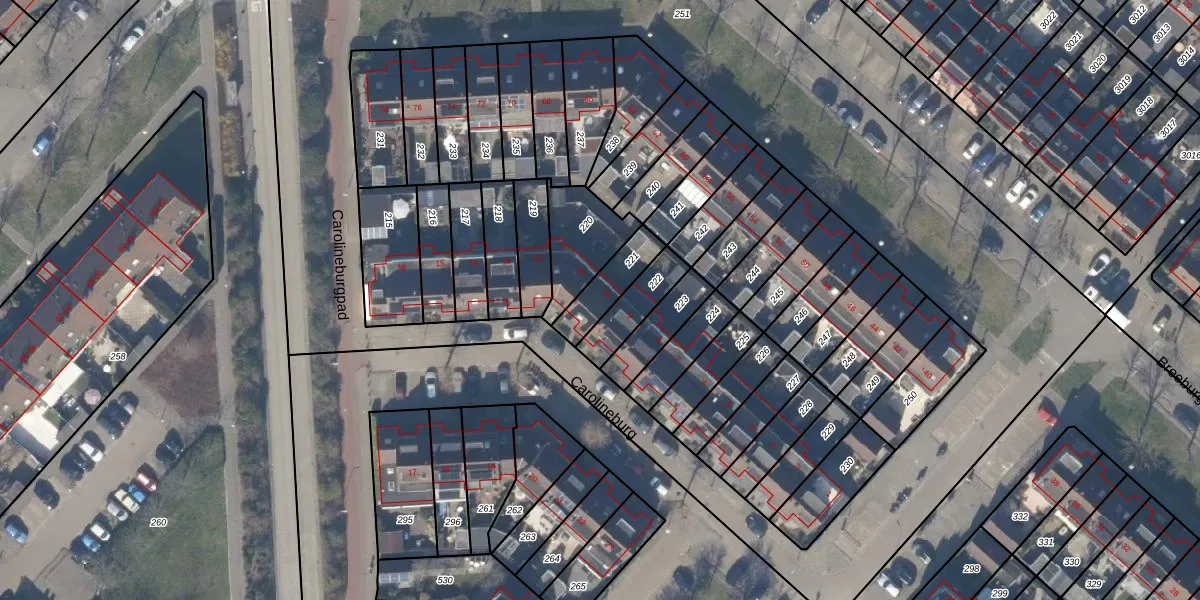 Het perceel waarop Carolineburg 10 staat heeft een oppervlakte van 123 m². Dit is een middelgroot perceel. De perceeloppervlakte wordt geregistreerd door het Kadaster. Gedetailleerde informatie over de maten van dit perceel kunt u vinden in het rapport Kadastrale kaart met maatvoering van Carolineburg 10.