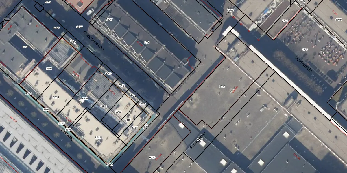 Het perceel waarop Concourslaan 104 staat heeft een oppervlakte van 1573 m². Dit is een zeer groot perceel. De perceeloppervlakte wordt geregistreerd door het Kadaster. Gedetailleerde informatie over de maten van dit perceel kunt u vinden in het rapport Kadastrale kaart met maatvoering van Concourslaan 104.