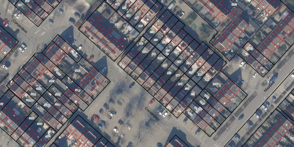 Corversbos 162 is gelegen op kadastraal perceel HLM03P3319. Deze kadastrale aanduiding is uniek en wordt gebruikt door het Kadaster om eigendomsrechten en andere zakelijke rechten vast te leggen. Het perceel maakt onderdeel uit van de kadastrale gemeente Haarlemmermeer.