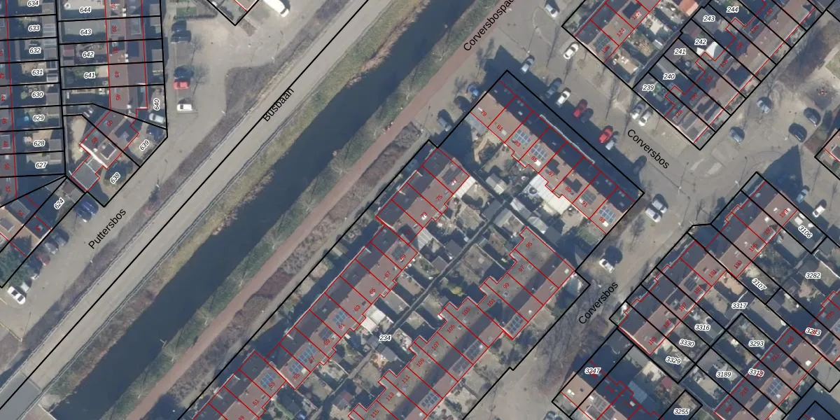 Het perceel waarop Corversbos 73 staat heeft een oppervlakte van 6715 m². Dit is een zeer groot perceel. De perceeloppervlakte wordt geregistreerd door het Kadaster. Gedetailleerde informatie over de maten van dit perceel kunt u vinden in het rapport Kadastrale kaart met maatvoering van Corversbos 73.