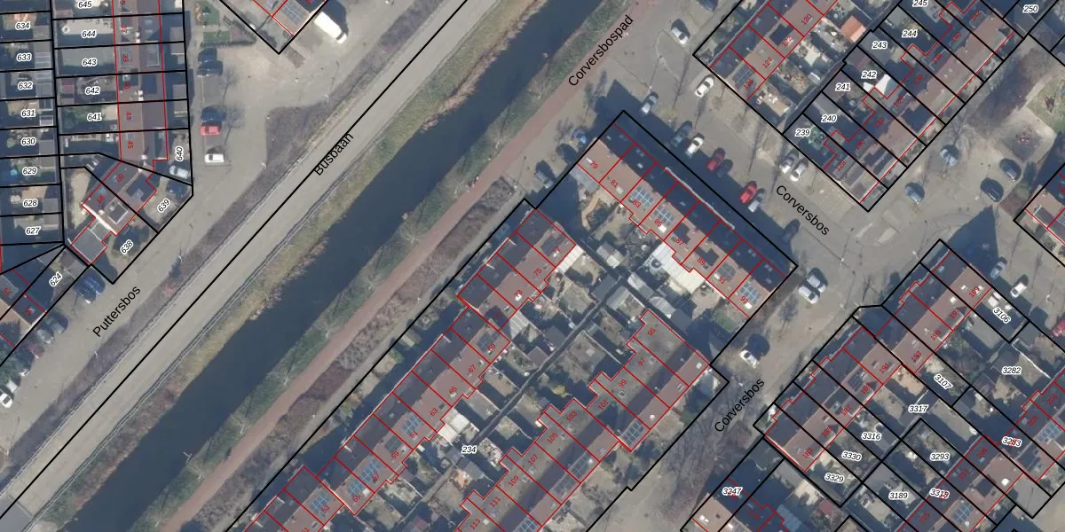 Het perceel waarop Corversbos 75 staat heeft een oppervlakte van 6715 m². Dit is een zeer groot perceel. De perceeloppervlakte wordt geregistreerd door het Kadaster. Gedetailleerde informatie over de maten van dit perceel kunt u vinden in het rapport Kadastrale kaart met maatvoering van Corversbos 75.