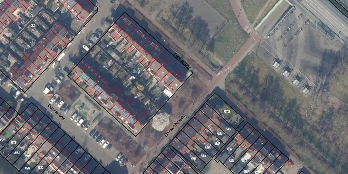Dassenbos 178 is gelegen op kadastraal perceel HLM03P452. Deze kadastrale aanduiding is uniek en wordt gebruikt door het Kadaster om eigendomsrechten en andere zakelijke rechten vast te leggen. Het perceel maakt onderdeel uit van de kadastrale gemeente Haarlemmermeer.