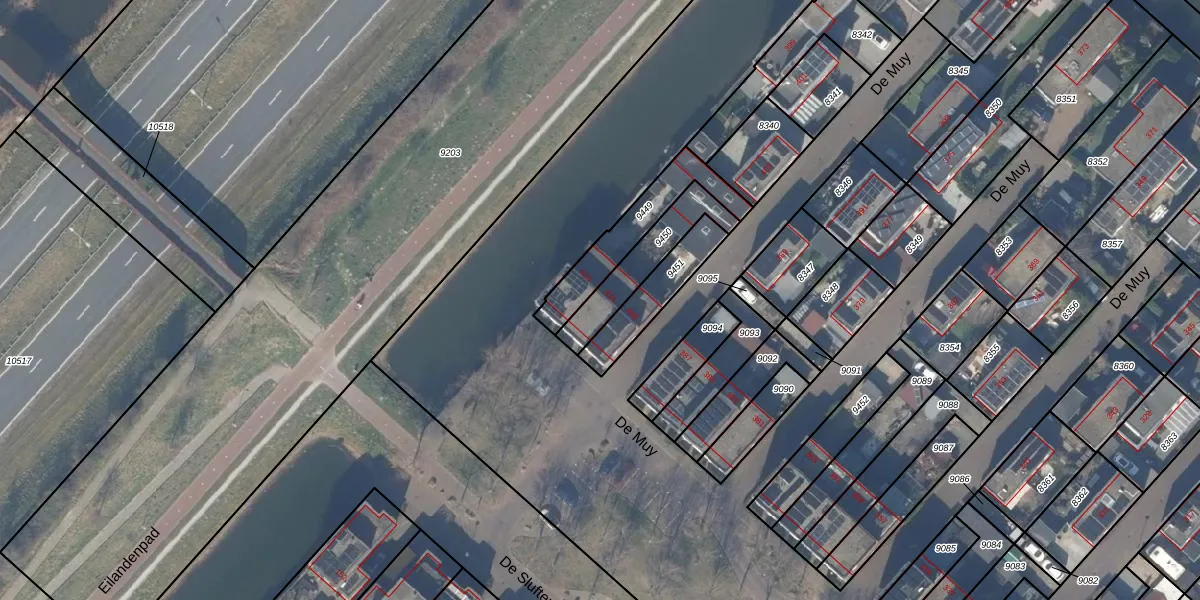 Het perceel waarop De Muy 411 staat heeft een oppervlakte van 190 m². Dit is een middelgroot perceel. De perceeloppervlakte wordt geregistreerd door het Kadaster. Gedetailleerde informatie over de maten van dit perceel kunt u vinden in het rapport Kadastrale kaart met maatvoering van De Muy 411.