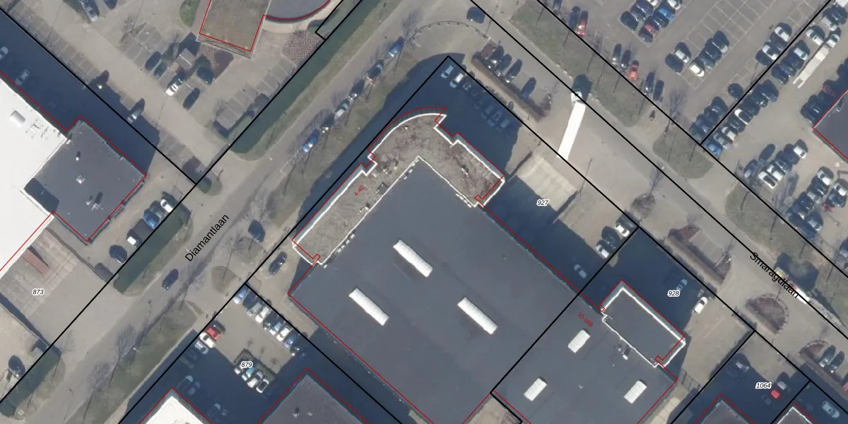 Het perceel waarop Diamantlaan 4-C staat heeft een oppervlakte van 4535 m². Dit is een zeer groot perceel. De perceeloppervlakte wordt geregistreerd door het Kadaster. Gedetailleerde informatie over de maten van dit perceel kunt u vinden in het rapport Kadastrale kaart met maatvoering van Diamantlaan 4-C.