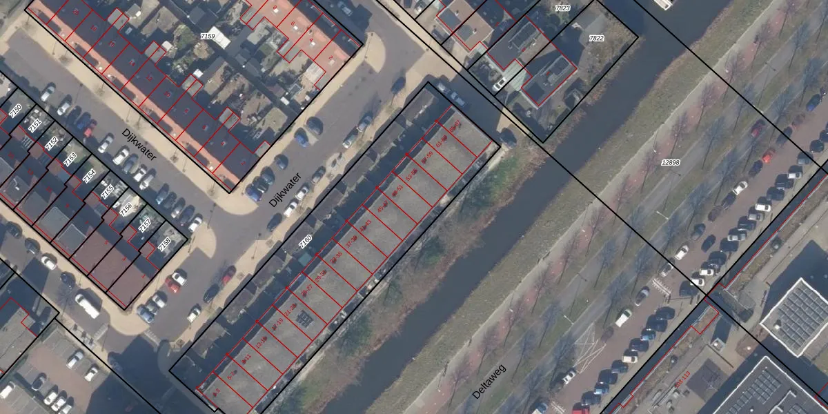 Het perceel waarop Dijkwater 51 staat heeft een oppervlakte van 2195 m². Dit is een zeer groot perceel. De perceeloppervlakte wordt geregistreerd door het Kadaster. Gedetailleerde informatie over de maten van dit perceel kunt u vinden in het rapport Kadastrale kaart met maatvoering van Dijkwater 51.
