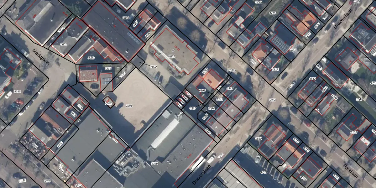 Gebruik de zoekbalk of klik op een perceel voor informatie over de adressen binnen dit perceel.
