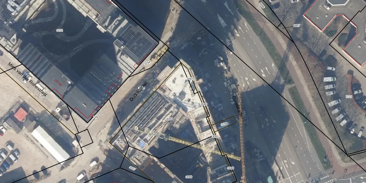 Dudokstraat 105 is gelegen op kadastraal perceel HLM03AL3045. Deze kadastrale aanduiding is uniek en wordt gebruikt door het Kadaster om eigendomsrechten en andere zakelijke rechten vast te leggen. Het perceel maakt onderdeel uit van de kadastrale gemeente Haarlemmermeer.