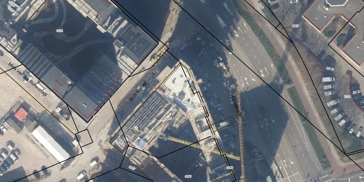Dudokstraat 107 is gelegen op kadastraal perceel HLM03AL3045. Deze kadastrale aanduiding is uniek en wordt gebruikt door het Kadaster om eigendomsrechten en andere zakelijke rechten vast te leggen. Het perceel maakt onderdeel uit van de kadastrale gemeente Haarlemmermeer.