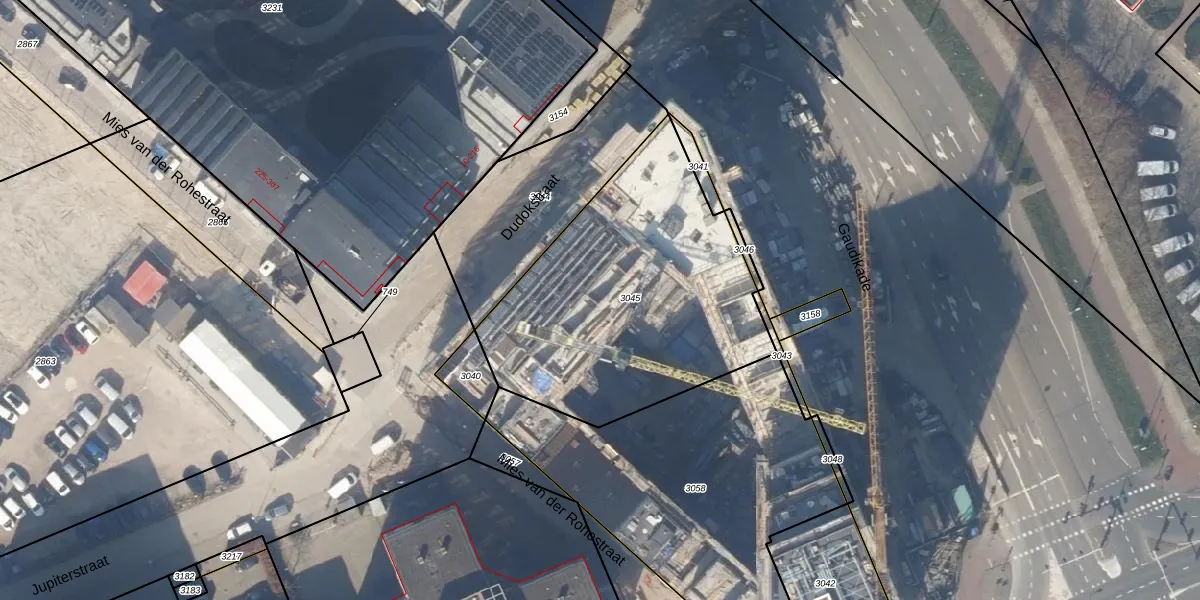 Het perceel waarop Dudokstraat 377 staat heeft een oppervlakte van 1426 m². Dit is een zeer groot perceel. De perceeloppervlakte wordt geregistreerd door het Kadaster. Gedetailleerde informatie over de maten van dit perceel kunt u vinden in het rapport Kadastrale kaart met maatvoering van Dudokstraat 377.