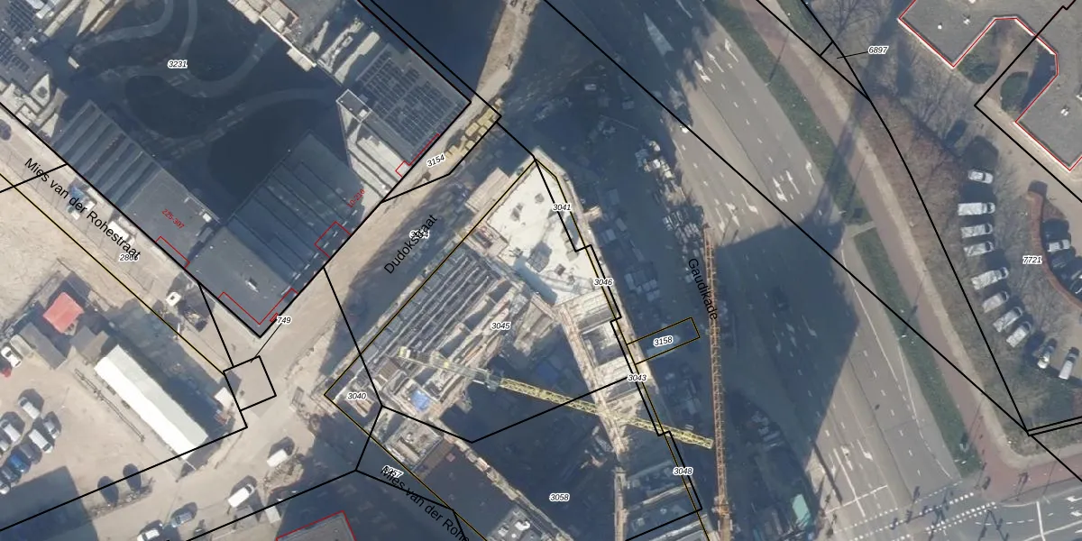 Dudokstraat 71 is gelegen op kadastraal perceel HLM03AL3045. Deze kadastrale aanduiding is uniek en wordt gebruikt door het Kadaster om eigendomsrechten en andere zakelijke rechten vast te leggen. Het perceel maakt onderdeel uit van de kadastrale gemeente Haarlemmermeer.