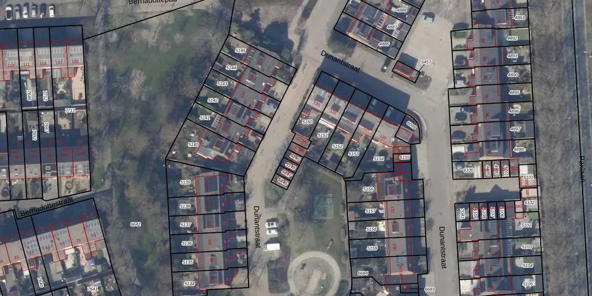 Het perceel waarop Dunantstraat 120-B staat heeft een oppervlakte van 192 m². Dit is een middelgroot perceel. De perceeloppervlakte wordt geregistreerd door het Kadaster. Gedetailleerde informatie over de maten van dit perceel kunt u vinden in het rapport Kadastrale kaart met maatvoering van Dunantstraat 120-B.
