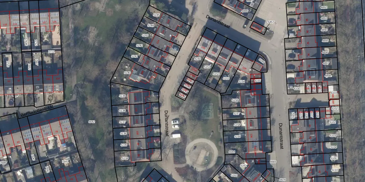 Het perceel waarop Dunantstraat 120-E staat heeft een oppervlakte van 18 m². Dit is een klein perceel. De perceeloppervlakte wordt geregistreerd door het Kadaster. Gedetailleerde informatie over de maten van dit perceel kunt u vinden in het rapport Kadastrale kaart met maatvoering van Dunantstraat 120-E.