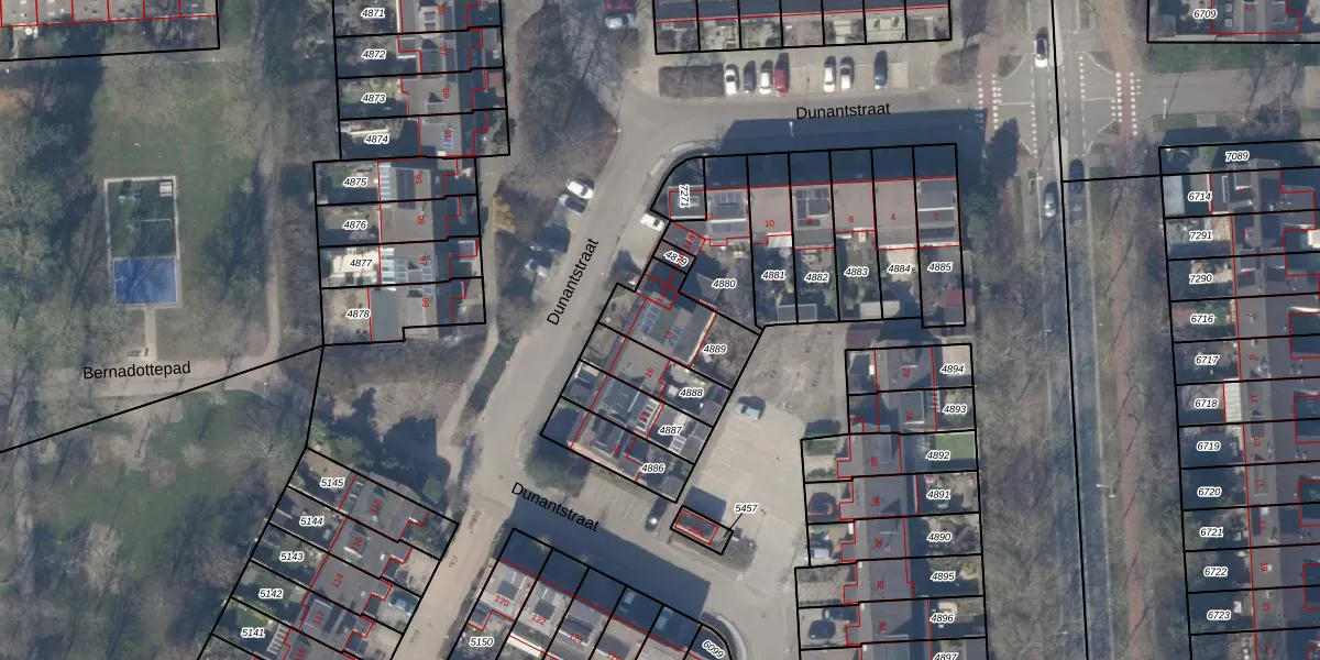 Het perceel waarop Dunantstraat 14 staat heeft een oppervlakte van 227 m². Dit is een middelgroot perceel. De perceeloppervlakte wordt geregistreerd door het Kadaster. Gedetailleerde informatie over de maten van dit perceel kunt u vinden in het rapport Kadastrale kaart met maatvoering van Dunantstraat 14.